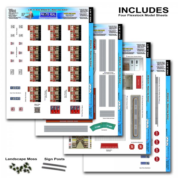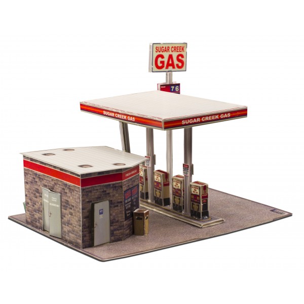 "Gas Station" Photo Real Scale Building Kit is a complete scale model set that comes ready to trim and assemble.