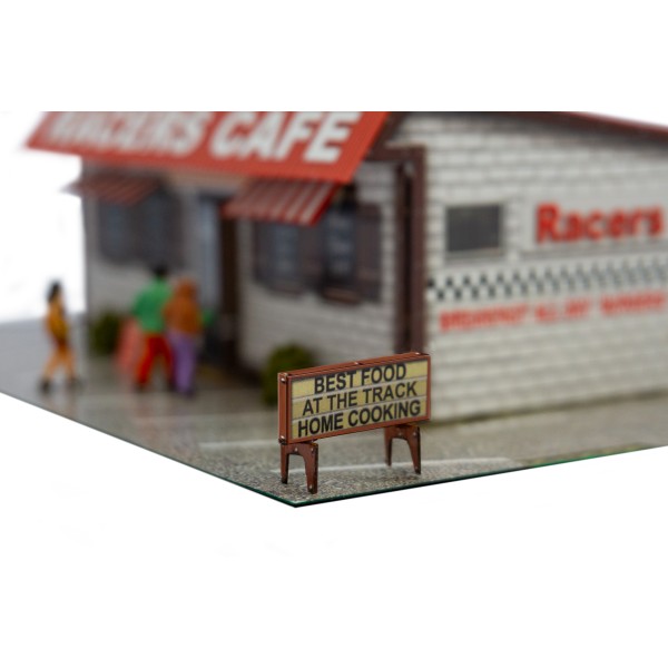 "HO Raceway Cafe" Photo Real Scale Building Kit is a complete scale model set that comes ready to trim and assemble.