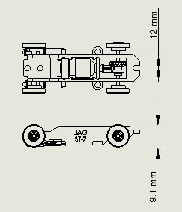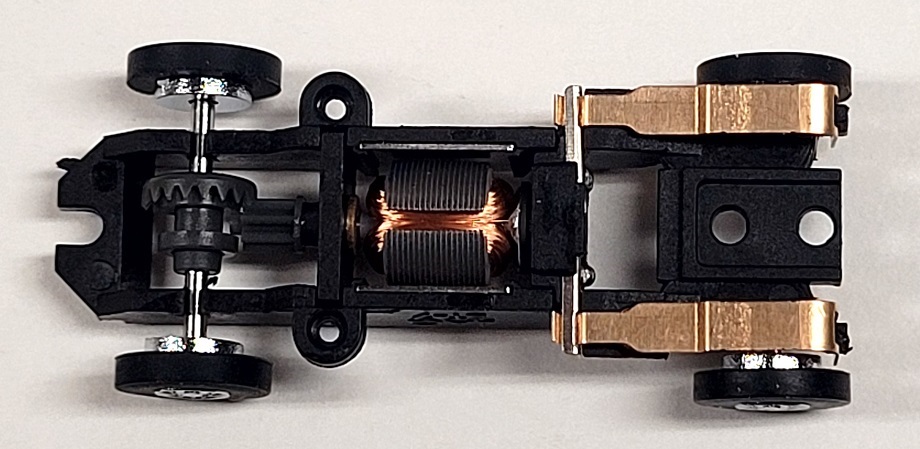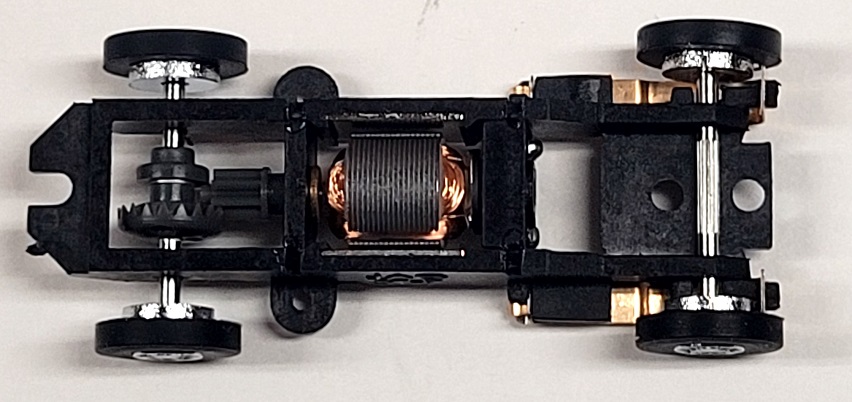 chassis to replace the standard T-Jet chassis. This chassis is controllable without traction magnets or resistors. Standard chassis do not include traction magnets. Wheelbase - 1.340" (34.0 mm) to 1.475" (37.5 mm)