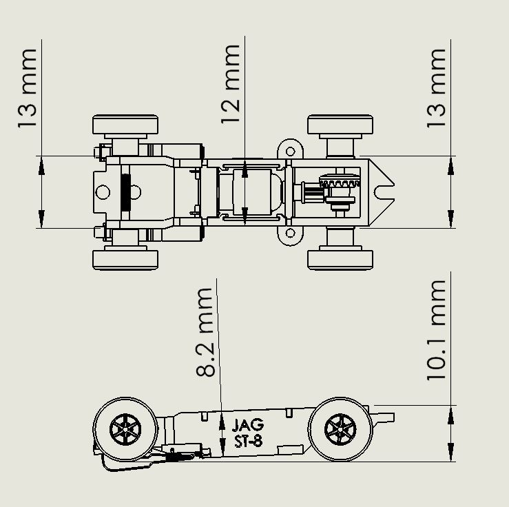 chassis. Chassis does not include traction magnets. Wheelbase - 1.319" (33.5 mm) - 1.419" (36.05 mm) - 1.520" (38.6 mm) Please share