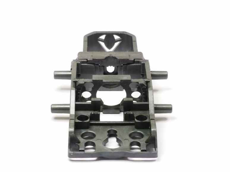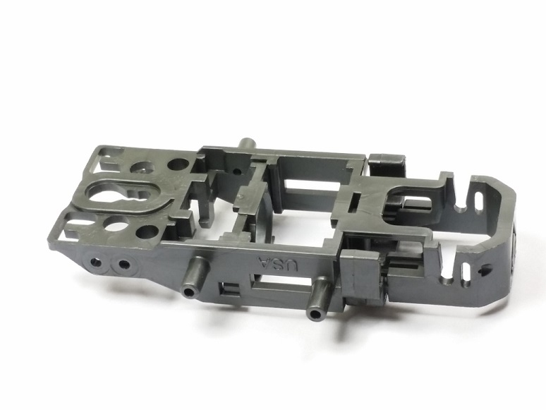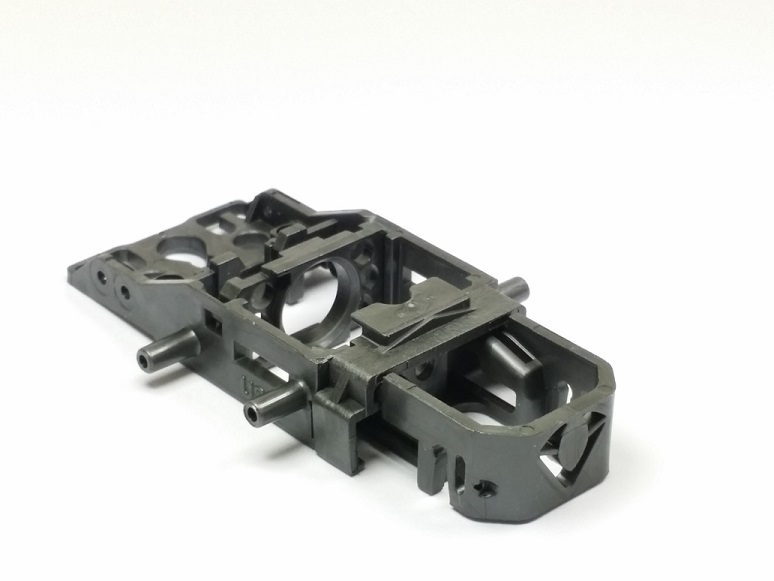 - Handling ‘tunnels’ under the chassis. Area was relieved several thousandths to allow clearance for high rails. Mimics a sanded chassis effect. Lightened front end features.
